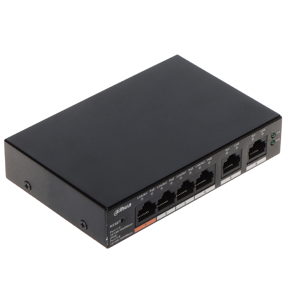 Switch di rete 4 Porte PoE + 2 Porte 10/100/1000 RJ45. Potenza totale