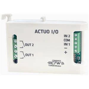 Actuo I/O CTW è un modulo uscite wireless 868 Mhz bidirezionale per centrali compatibili con sistema radio CTW (Combivox Turbo Wireless). Il dispositivo, in contenitore predisposto per barra DIN, è dotato di 2 ingressi configurabili per pulsanti/interrutori di attivazione (impulsivo/ a stato) delle uscite, e di 2OUT (relè 3A liberi da tensione) programmabili come comando (bistabile/impulsivo) o associabili ad evento di centrale (ins./dis., allarme zona/area, stato area, stato zona, sirena, etc.).