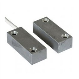 Contatto magnetico in metallo per montaggio a vista con elevata resistenza meccanica. Adatto per il montaggio su infissi di qualsiasi materiale: alluminio, legno, PVC, ferro, ecc. anche con elevati giochi o tolleranze grazie alla elevata distanza di intervento. La parte reed contiene una ampolla reed incapsulata ermeticamente con resina poliuretanica insieme ad un loop di tamper per ridurre le possibilità di effrazione. La connessione è a 4 fili (2 fili contatto NC con magnete vicino e 2 fili per tamper). Si fissa al serramento con viti.