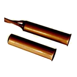 Contatto magnetico in termoplastico marrone per montaggio ad incasso negli infissi. Adatto per il montaggio su infissi di alluminio, legno, PVC e in genere infissi di materiale non ferromagnetico (il montaggio su infissi in ferro riduce sensibilmente la distanza di intervento). L'ampia distanza di intervento ne permette l'installazione anche su infissi con elevate tolleranze o giochi. Viene montato a pressione in un foro di 8 mm di diametro. La parte reed contiene una ampolla reed incapsulata ermeticamente con resina poliuretanica insieme ad un loop di tamper per ridurre le possibilità di effrazione. Disponibile versione con contatto NC, con contatto NC-NA (in scambio) e con cavo di diverse lunghezze. La connessione è a 4 fili (2 fili contatto NC con magnete vicino e 2 fili per tamper) o a 5 fili nel caso di ampolla in scambio (3 fili contatti ampolla 2 fili per tamper). Disponibile nei colori bianco e marrone. Con l'apposito kit, a richiesta, è possibile l'installazione a vista e con la piastrina 418 è