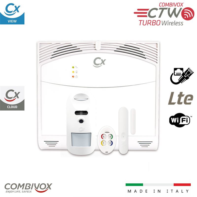 Centrale ibrida (Zone Radio/Filo + BUS), realizzata sull’esclusiva piattaforma Wireless 868 MHz CTW (Combivox Turbo Wireless). Triplo vettore di comunicazione integrato: LAN e WLAN, 4G LTE per la connessione in CLOUD: gestione Utente dell’impianto e segnalazioni (notifiche PUSH e-mail) tramite APP Simplya Cloud. Telegestione dell’Installatore tramite software CombiTec e tramite applicativo CombiAPP. Comunicatore telefonico LTE per messaggi in fonia e SMS e la gestione tramite chiamata e menù vocale di assistenza. Contenitore ABS per alloggiamento di batteria da 7 Ah/ 9Ah. Wilma Fast è in grado di gestire 60 zone per 6 aree di inserimento; fino a 56 sensori radio e 4 sensori filari (4 zone a bordo e/o rilevatori BUS indoor e outdoor); gestione della zona in tastiera. Altoparlante integrato per la riproduzione di messaggi audio e funzione di sirena indoor; dispone di 2 uscite OC programmabili e di 1 uscita relè sirena. Funzioni domotiche: gestione fino a 24 moduli domotici wireless per il controllo di automazioni motorizzate e luci. BUS RS 485 per il collegamento di moduli satelliti (tastiere, inseritori indoor e outdoor, sirena, alimentatori supplementari, rivelatori BUS, ricevitore RT 868 PRO CTW). Aggiornamento FW da remoto. Disponibile nella versione VIDEO (Wilma Fast Video) per la gestione di sensori CTW dotati di fotocamera per funzione di videoverifica tramite APP Simplya Cloud. Invio di foto-allarmi tramite LAN/WLAN e modulo LTE. Compatibile con i sensori su BUS e i nuovi videosensori per le funzioni di videoverifica e videocontrollo in live. Tastiere su BUS: Unica PRO, Simplya PRO. Tastiere LAN/Wi-Fi: Simplya Video e Simplya Video Smart.