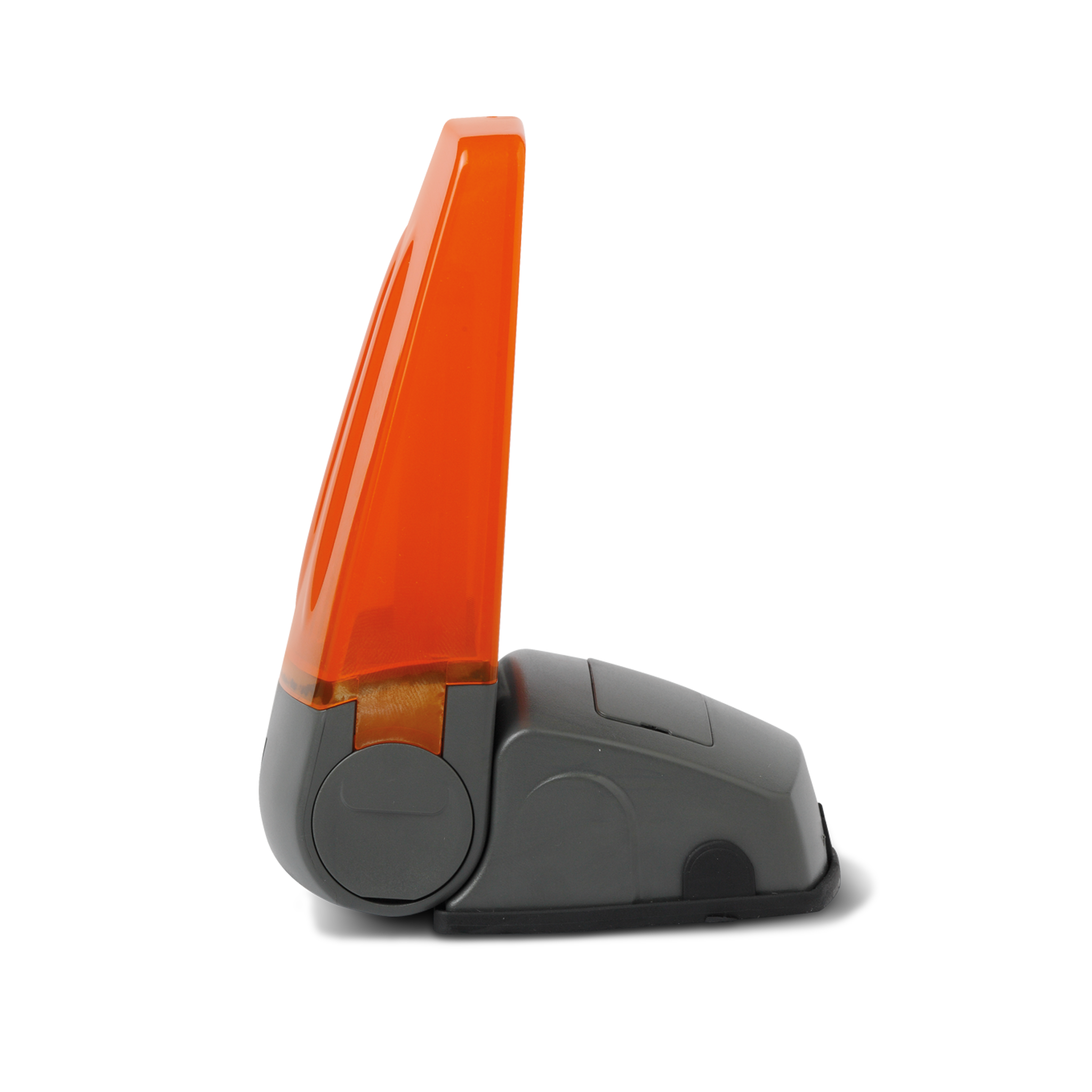 Lampeggiante composto da otto led ad alta efficienza e una speciale guida ottica (progetto Cardin). Il sistema luce è collocato all’interno di un contenitore antiurto realizzato in policarbonato opalescente che accentua la realizzazione dell’effetto luminoso.␞Una solida base, con piano di appoggio in gomma, consente l’applicazione del segnalatore luminoso su tutte le strutture ed in tutte le posizioni. La base può essere utilizzata (con una semplice rotazione) nella modalità a pilastro e nella modalità a parete.␞La struttura di sostegno, in materiale plastico antiurto, è predisposta per il fissaggio della speciale antenna opzionale con innesto BNC (cavo precablato sul connettore) e al tempo stesso protegge il collegamento di alimentazione elettrica dell’apparecchiatura.␞Grado di protezione IP54