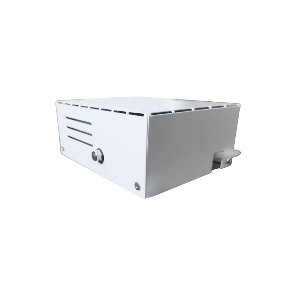 Micro-Nebbiogeno Veicolare da 22m3 fino a 100m3, tensione 12V, completo di: Cover bianco in metallo, SP2, n.1 ugello da 0°, n.1 tanica di liquido da 0.5Lt, n.1 tubo aspirazione liquido da 1m. N.B. Il serbatoio va collocato in un’altra posizione del veicolo.