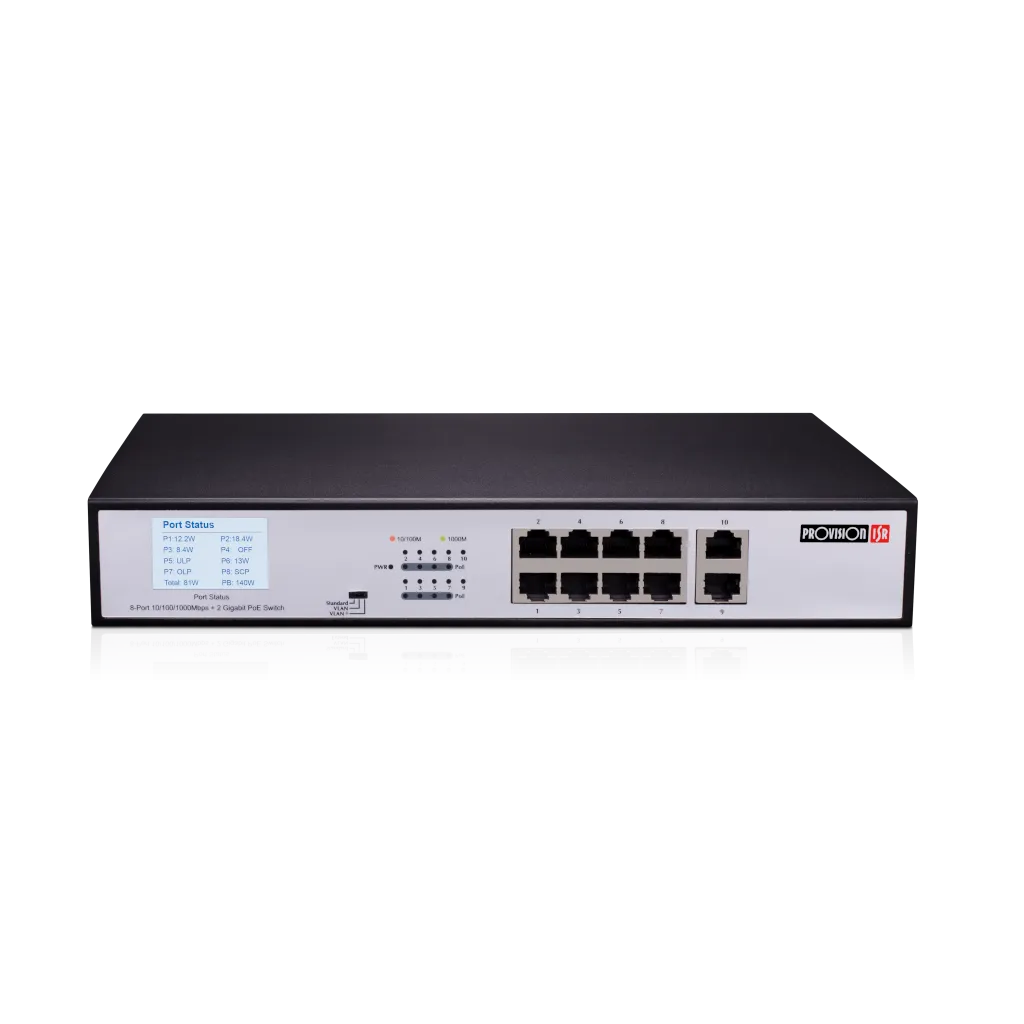 Switch PoE 8 Downlink + 2 Uplink 10/100/1000Mbps da 120W con modalità CCTV