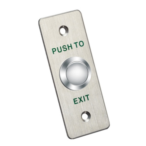 Pulsante di uscita a pressione. Pannello in alluminio. Pulsante in metallo.