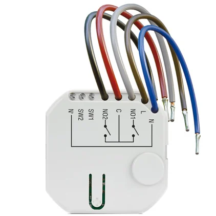 Interfaccia da incasso con 2 relè (contatto pulito 5 A) per automazioni, luci, caldaia, con 2 ingressi a bordo. Alimentazione 230 V AC. Compatibile con: SMART HUB, SMART HUB PLUS, ACU-220, ACU-280