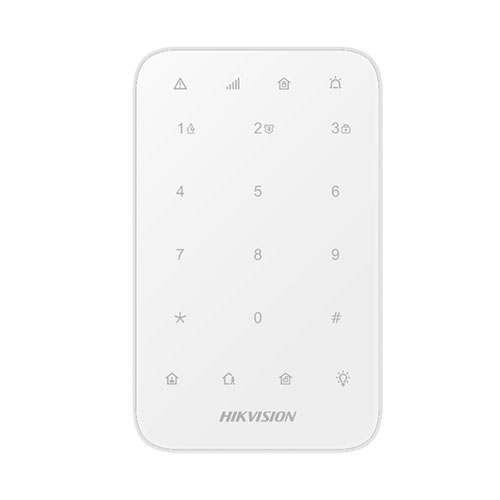 Tastiera di comando a LED wireless. 4 Indicatori a Led di: Inserito/Disinserito, Guasto, Segnale radio, Allarme. Tasti dedicati a: Incendio, Panico, Soccorso Medico, Inserimento Totale / Parziale, Disinserimento e Cancellazione dell'allarme per un'area specifica o per tutte le aree.